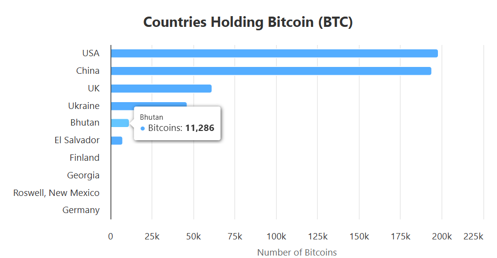 Bhutan’s ranking among countries that hold Bitcoin. Source: Bitbo